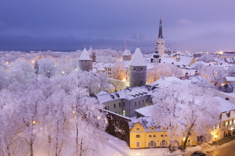 Snøflak drysser ned over de røde hustakene og brosteinsgatene. Stearinlys lyser opp kafévinduene og vinker deg inn for en kopp varm gløgg. Enten du har kommet for å se det legendariske juletreet eller bare ønsker å oppleve en hvit, snørik vinter, er dette din guide til jul i Tallinn.