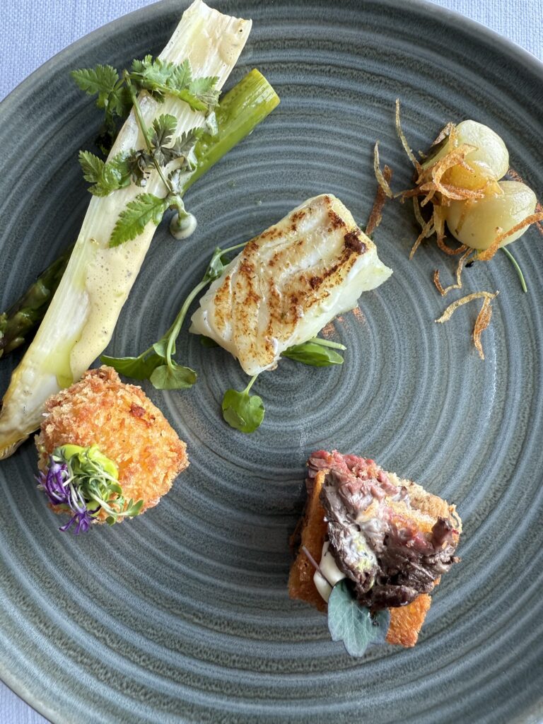 Restaurant Nôrd – Serverer en 10-retters smaksmeny i fire serveringer, med delemat ved bordet.