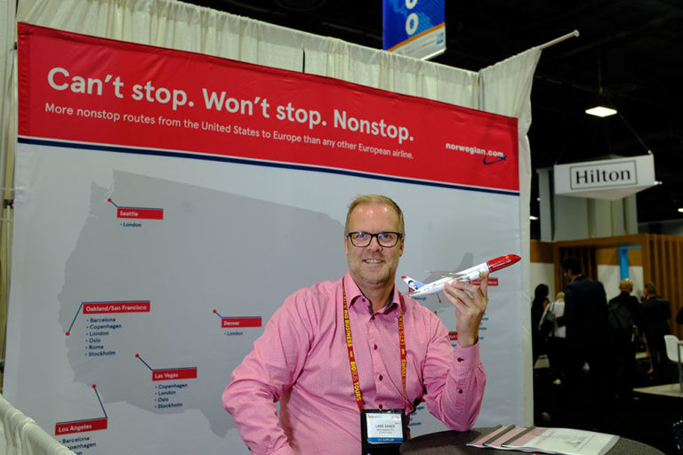 I forrige uke var han Norwegians mann på gigant-arrangementet International Pow Wow (IPW) i Washington DC. Her stilte mer enn tusen amerikanske reiseselskaper og organisasjoner ut sine produkter, og utvekslet visittkort med over 1300 internasjonale og nasjonale kjøpere fra mer enn 70 land. Samt la grunnlag for fremtidig business for en verdi på nesten 40 milliarder kroner.