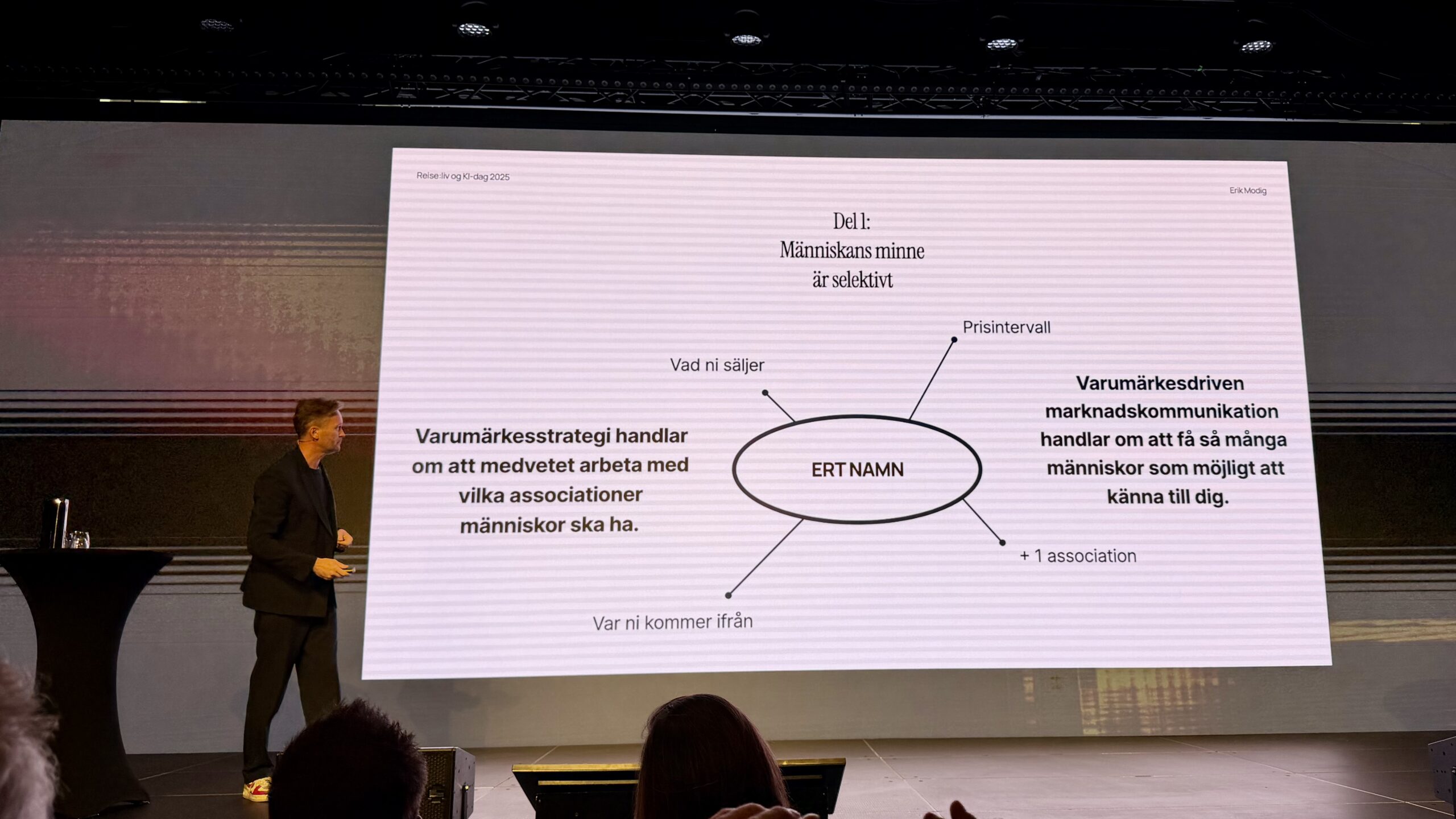 Erik Modig, CEO Marketing Levels AB og professor ved Handelshögskolan i Stockholm, bidro med et faglig innlegg om merkevarebygging. Han tok for seg hvordan menneskers minner er selektive, og hvordan virksomheter aktivt må arbeide med hvilke assosiasjoner målgrupper skal sitte igjen med. Presentasjonen dannet et faglig rammeverk for markedsføringsdelen av programmet.